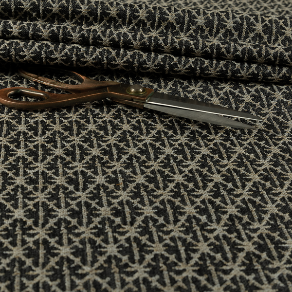 Baraka Geometric Pattern Cream Black Colour Upholstery Fabric CTR-2494